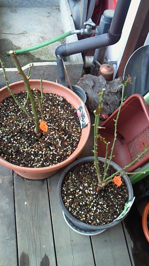 先日植えつけたバラが根付いてくれたようで、芽が伸び始めました。