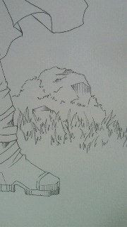 これ以上小さいと私は上手くカラーに出来ません…てゆか衣装をね、ちょっといじったので脚まで入れたくて、そうなるとこの絵に入る地面とかは最低でもきちんと主線入れて描かなくちゃならんわけで…